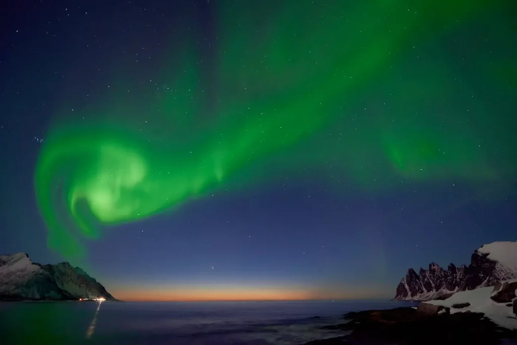 J’ai voulu dans cette exposition sublimer les paysages de l’arctique et ses lumières particulières. Du coucher du soleil puis lors de l’heure bleu pour enfin photographier les aurores boréales durant la nuit.